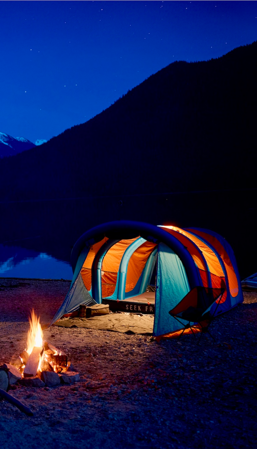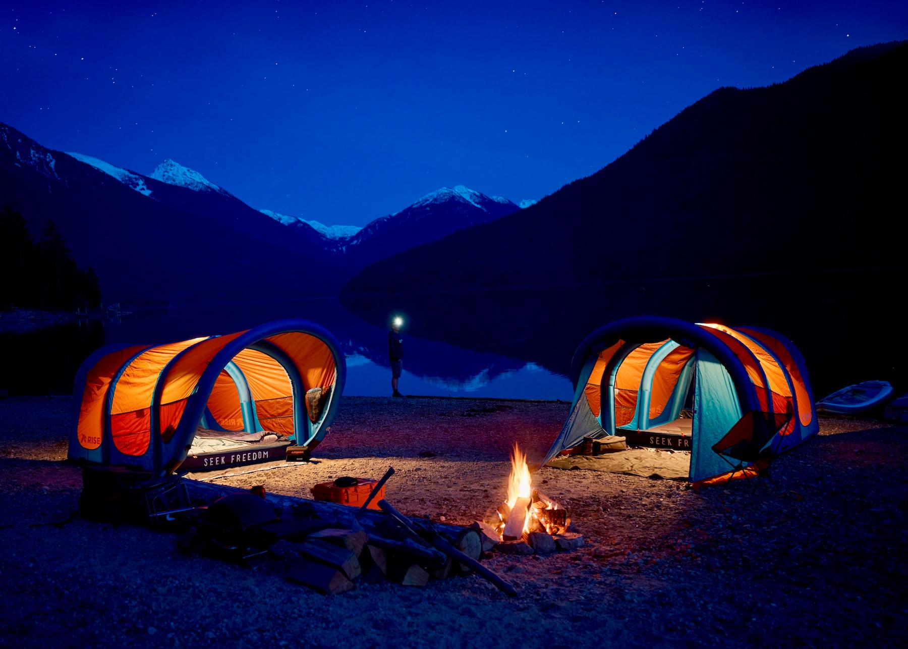 → AIRBANK powers lights, speakers, and phones long after the tent is up.